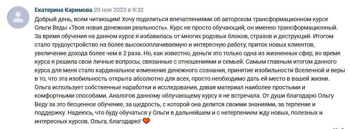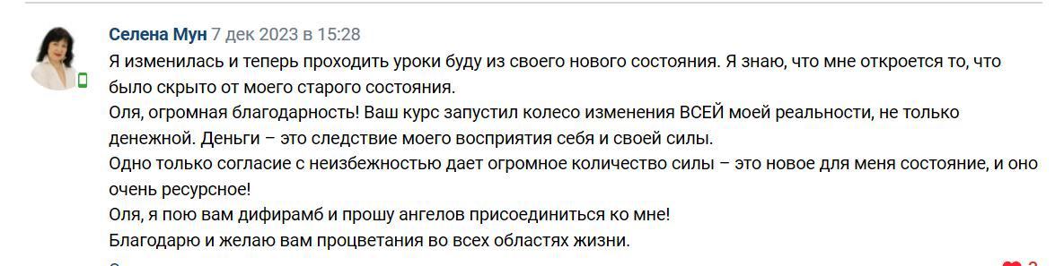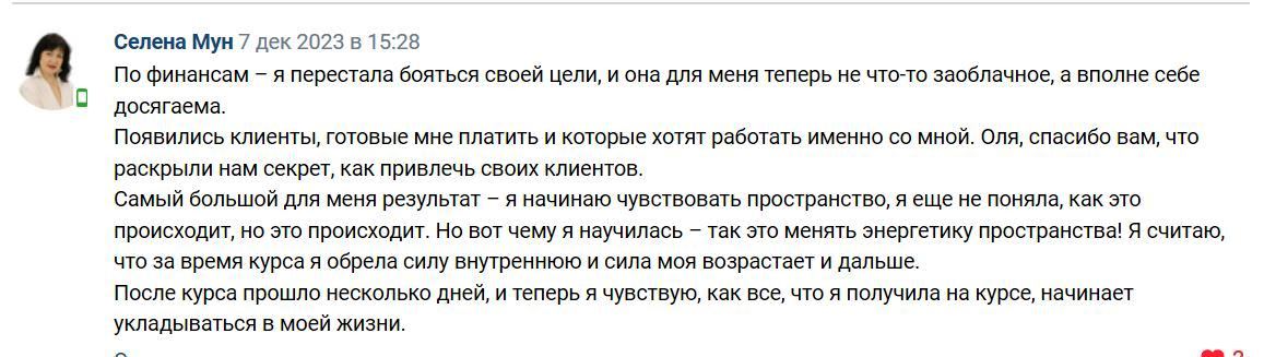 Вы станете свободными от страхов и ограничений и сможете смело двигаться к своим целям, получать результаты и перестанете беспокоиться за будущее