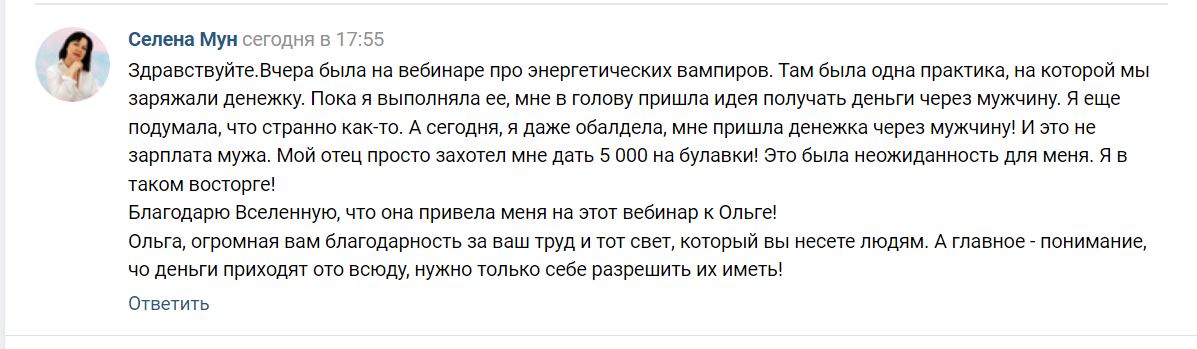 С помощью мощного ритуала Получения Чистых Божественных Ресурсов вы не только восстановите вашу энергию, которую высосали вампиры, но и получите божественные ресурсы, которые ваша душа растеряла в различных воплощениях.